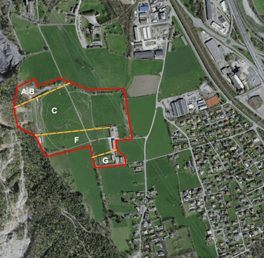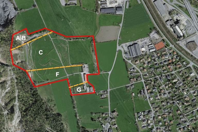 Situé sur la commune de St-Maurice, la place de tirs est découpée en 4 secteur distincts :